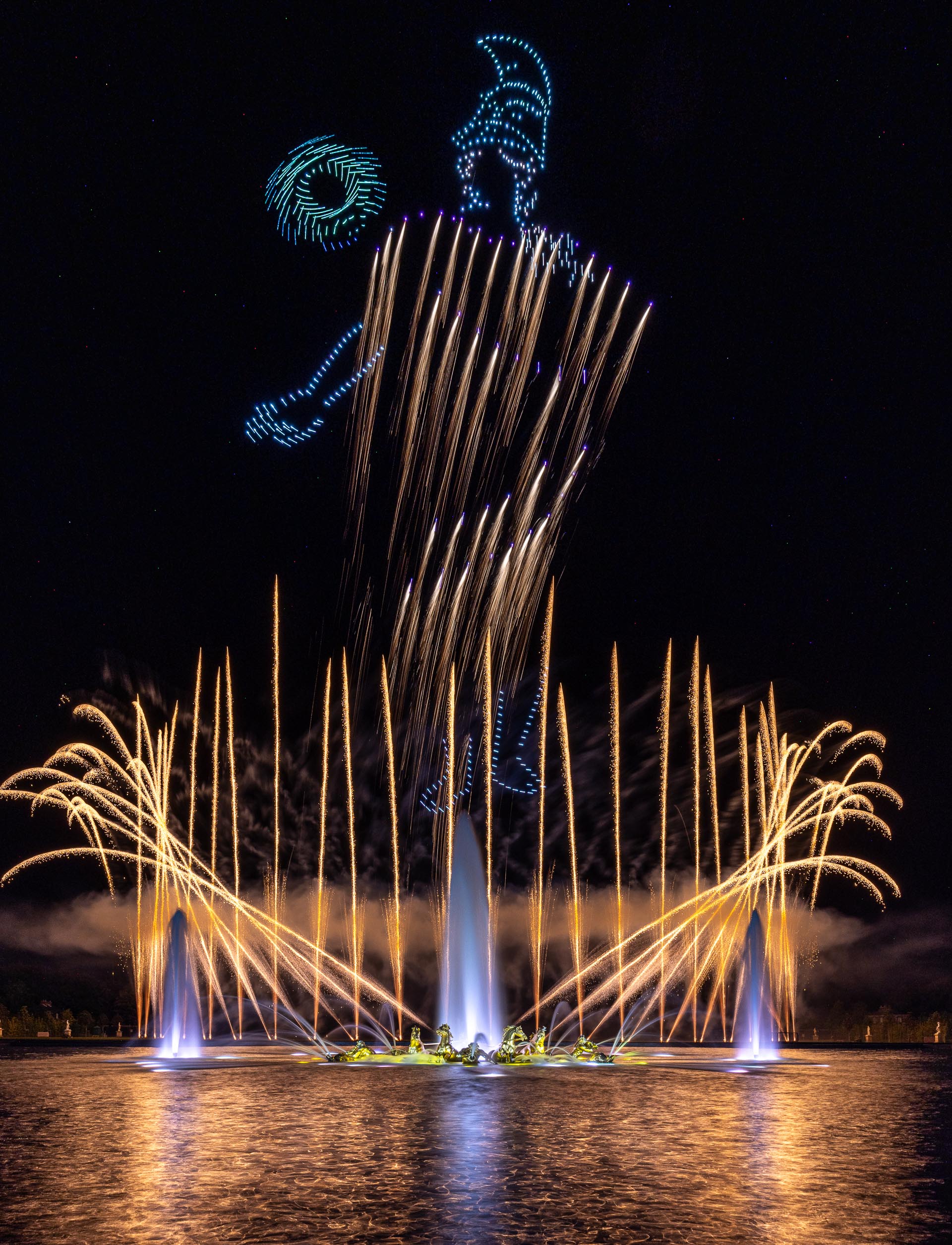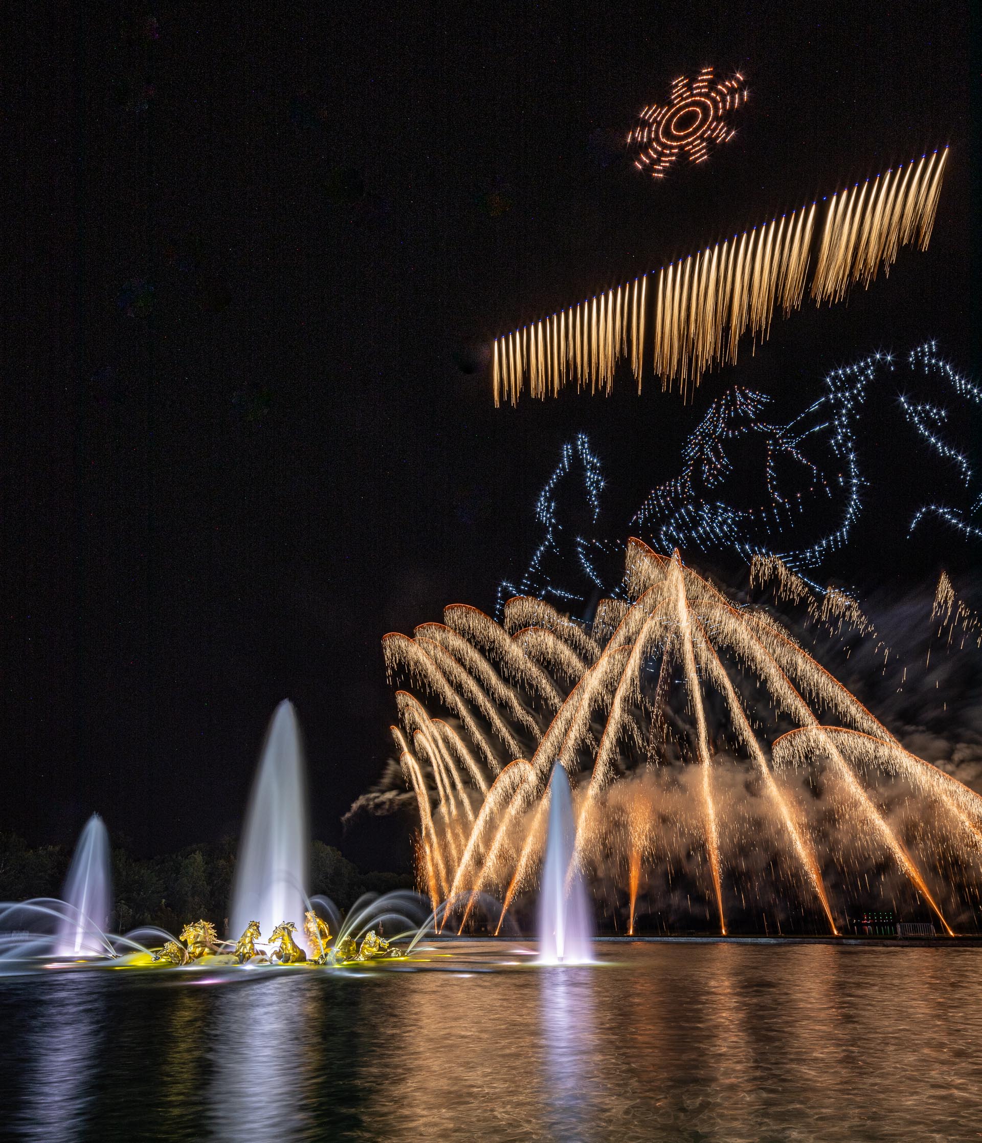 Drones and fireworks in the gardens of the Versailles Palace for a world's first.