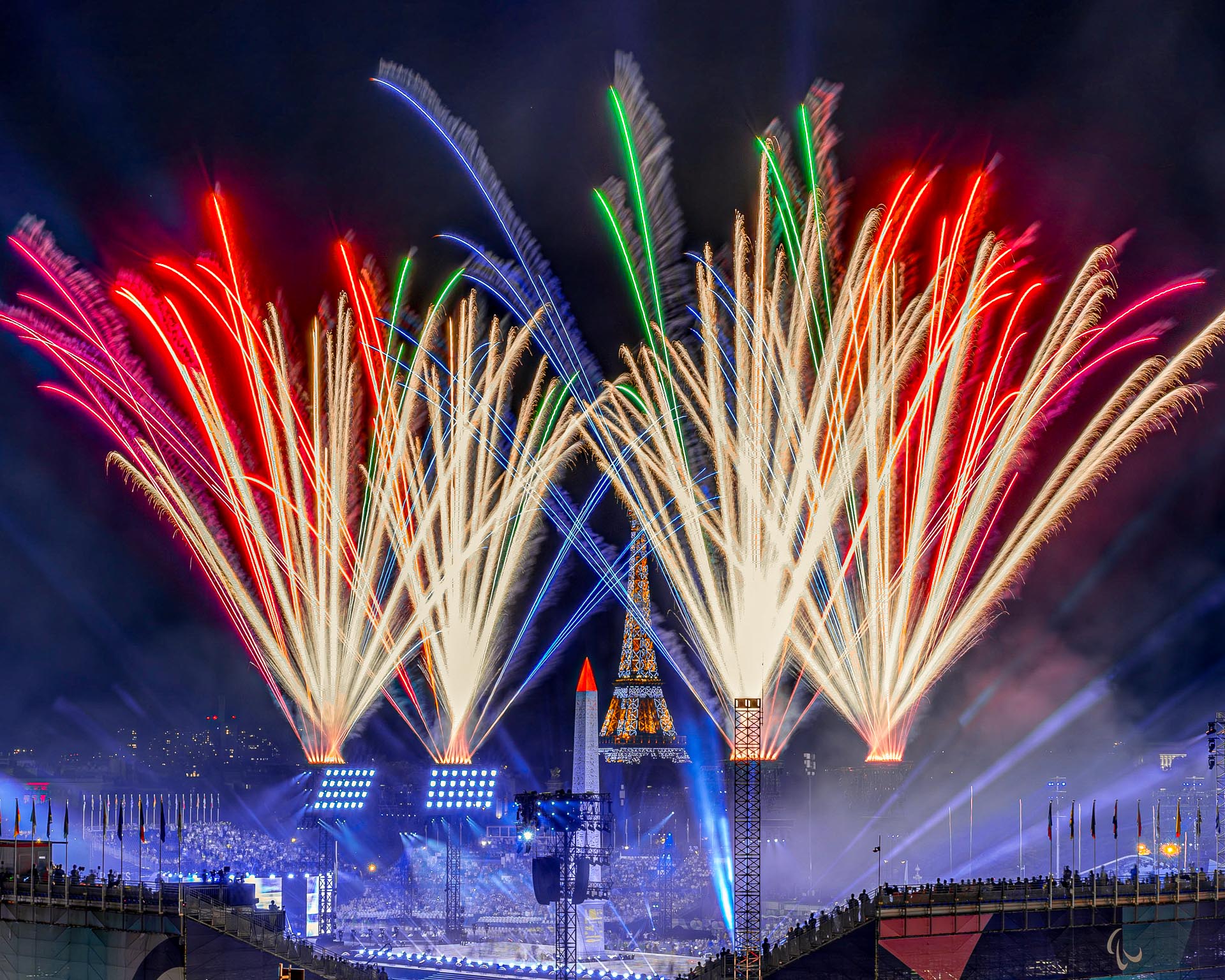 Bastille Day fireworks at the Eiffel Tower on July 14th by Groupe F.