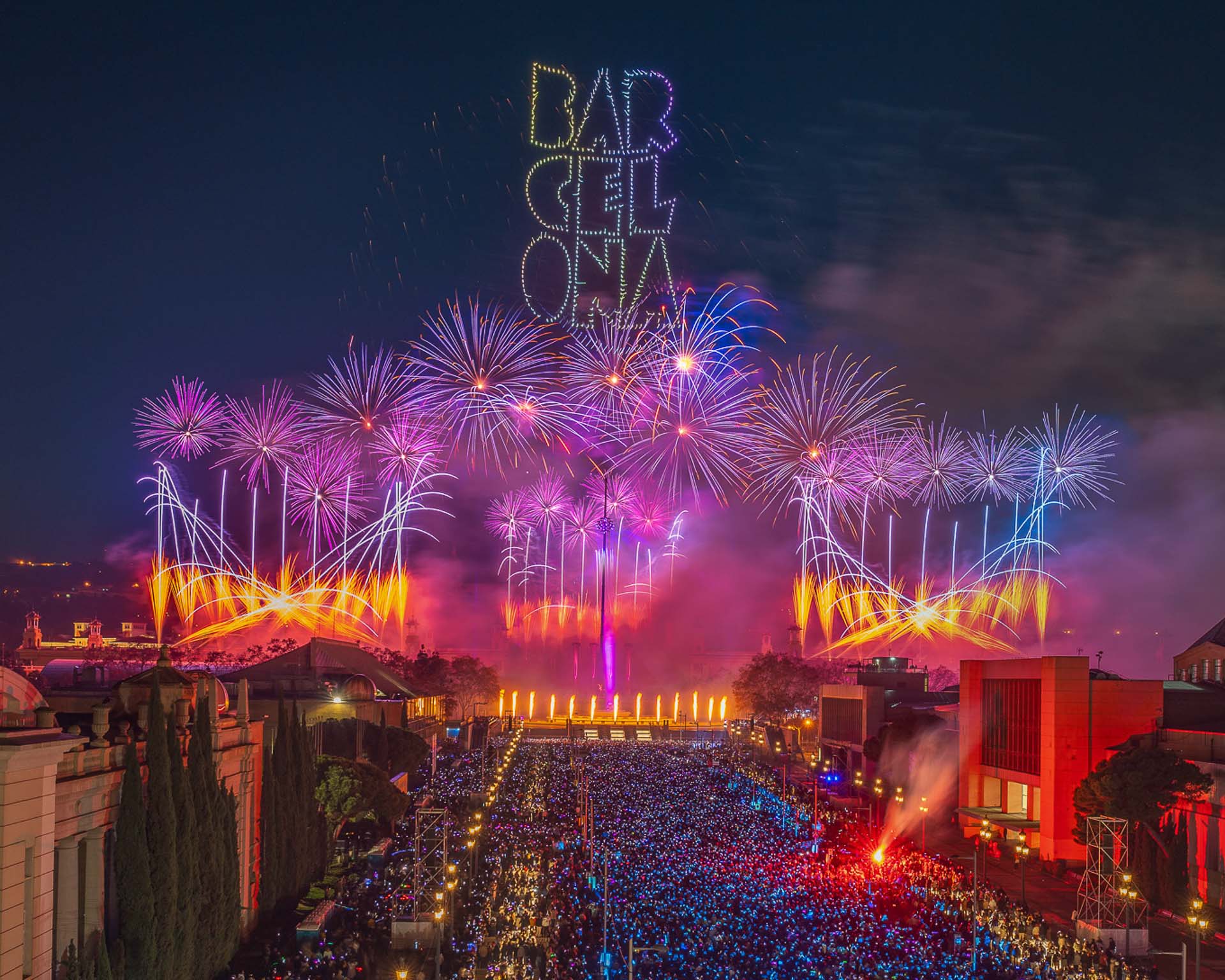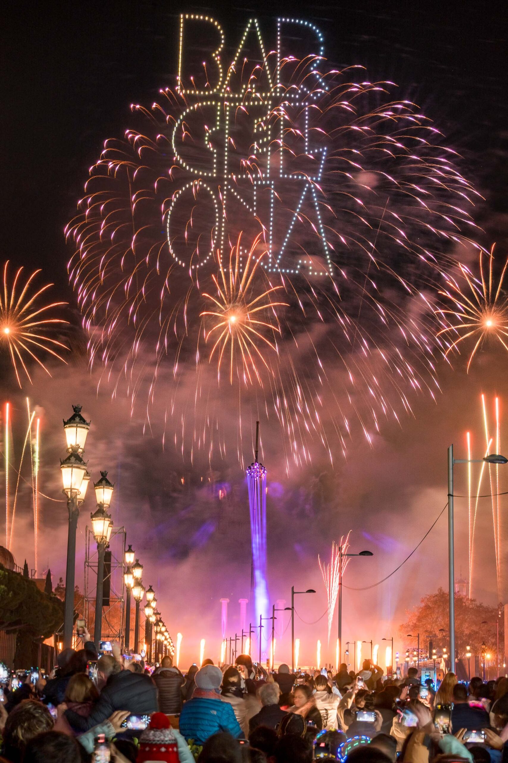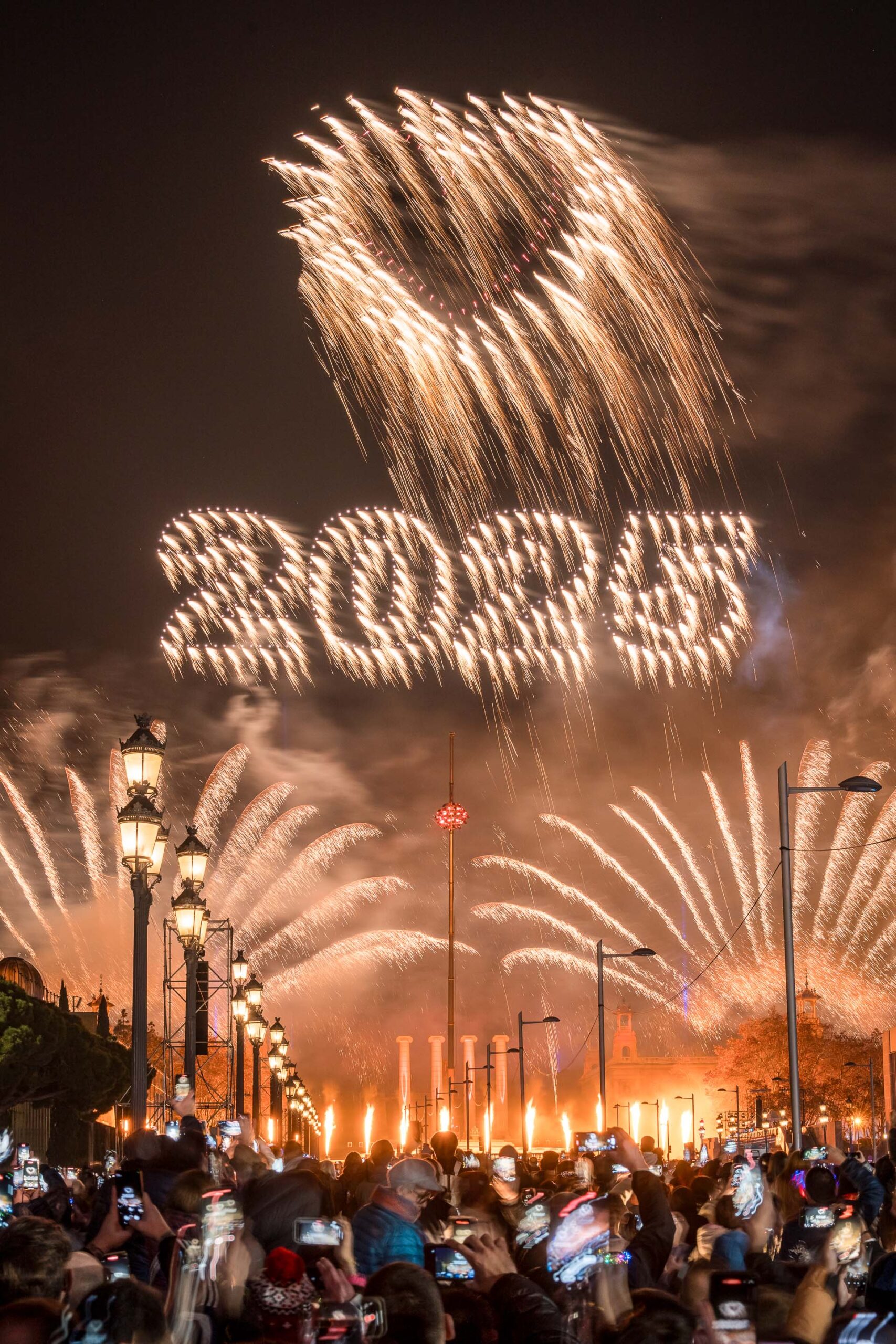 New Year's Eve 2023 at Barcelona with a drone and fireworks show.