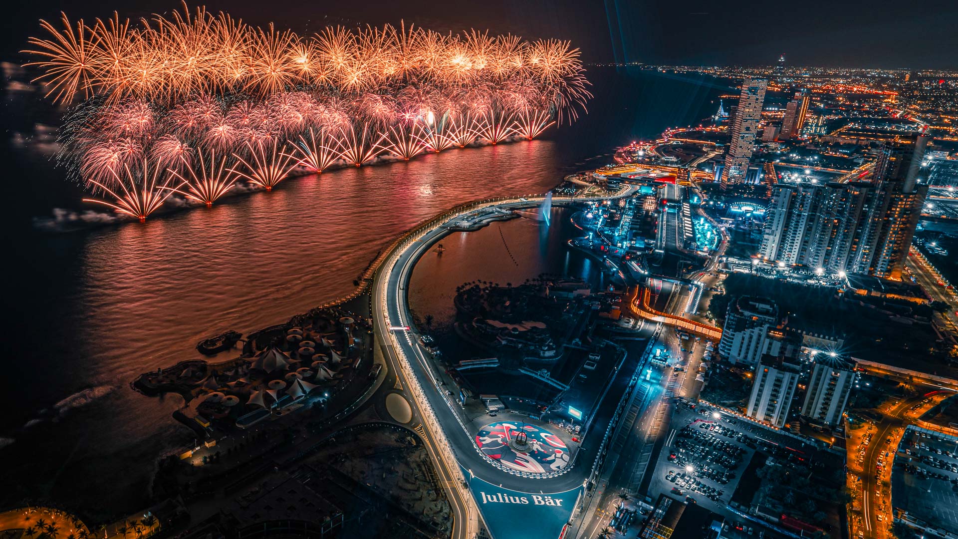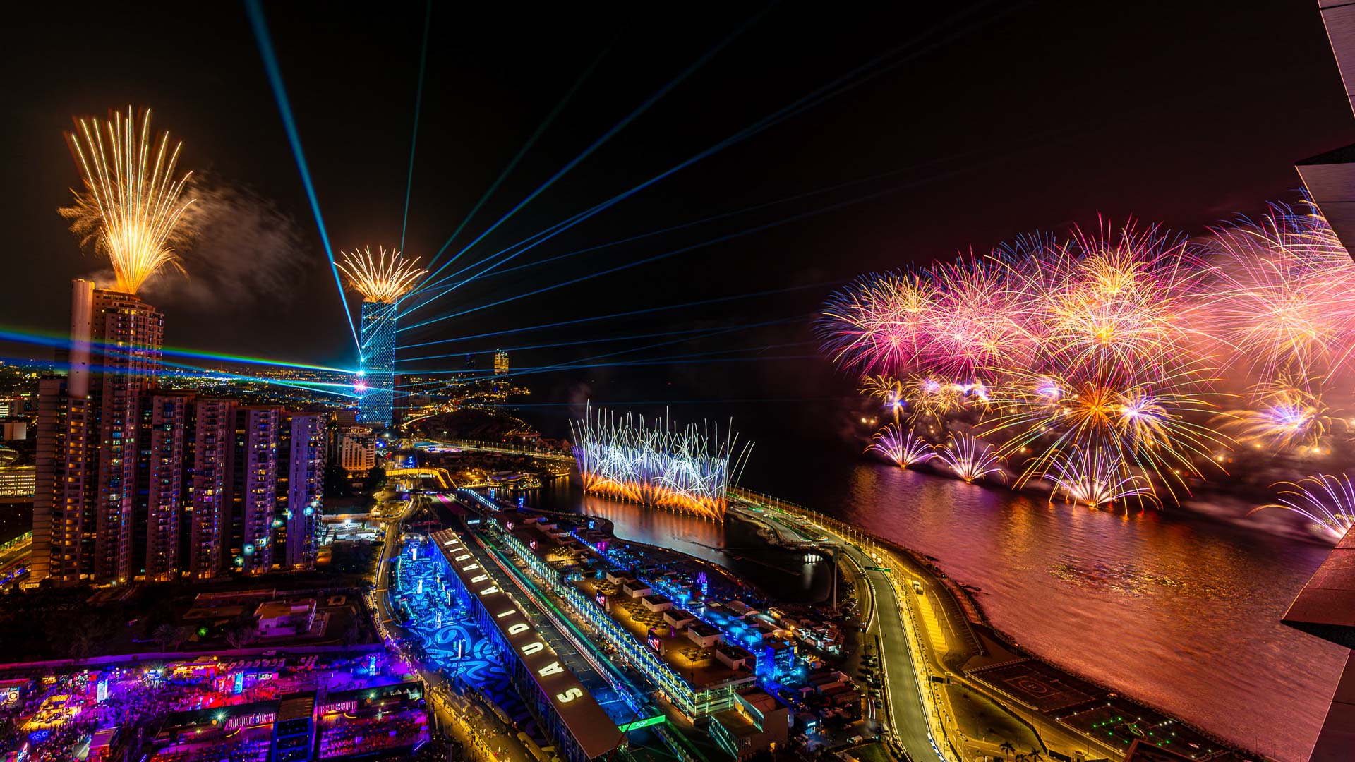 Large scale spectaculars fireworks on a daily basis in Jeddah for the entertainment season