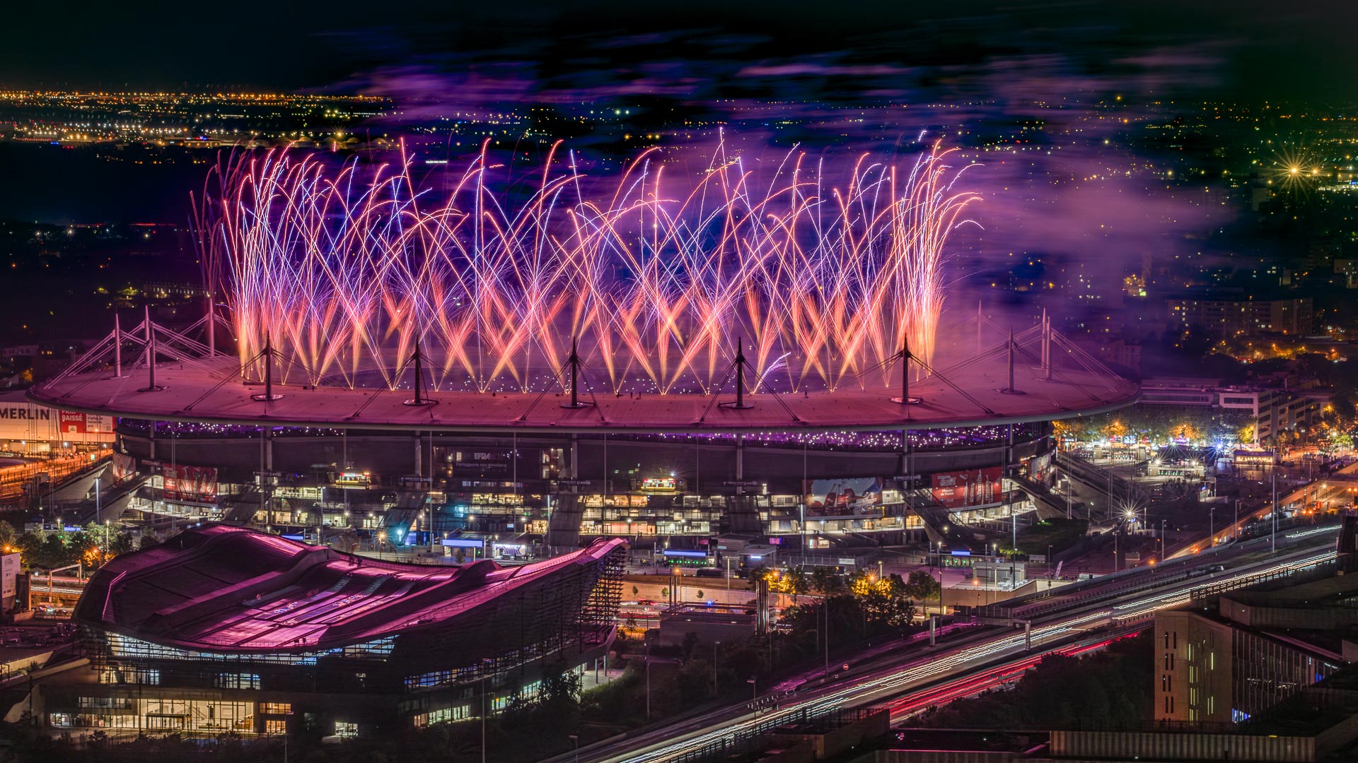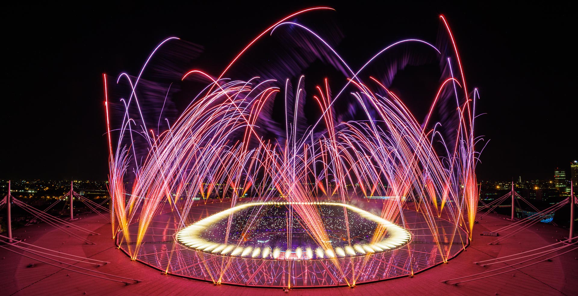 Opening and Closing ceremonies' fireworks for the FIFA World Cup.