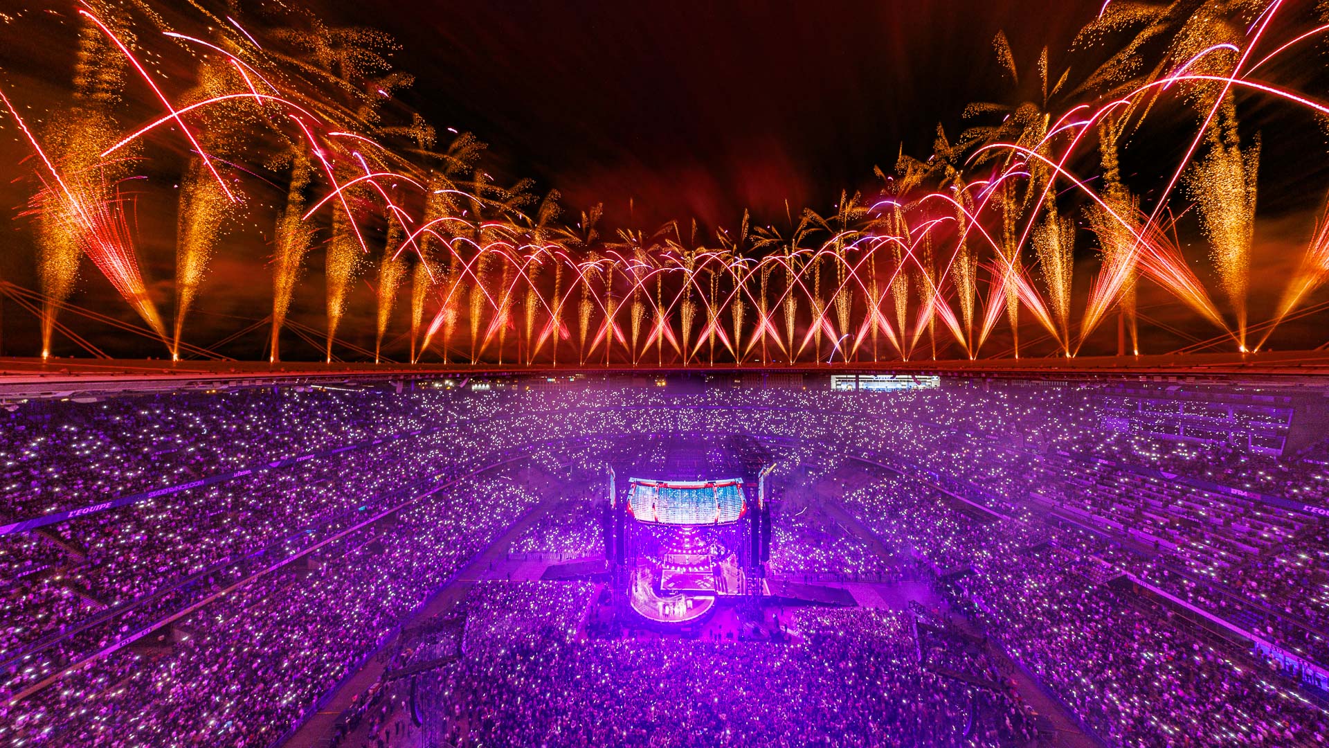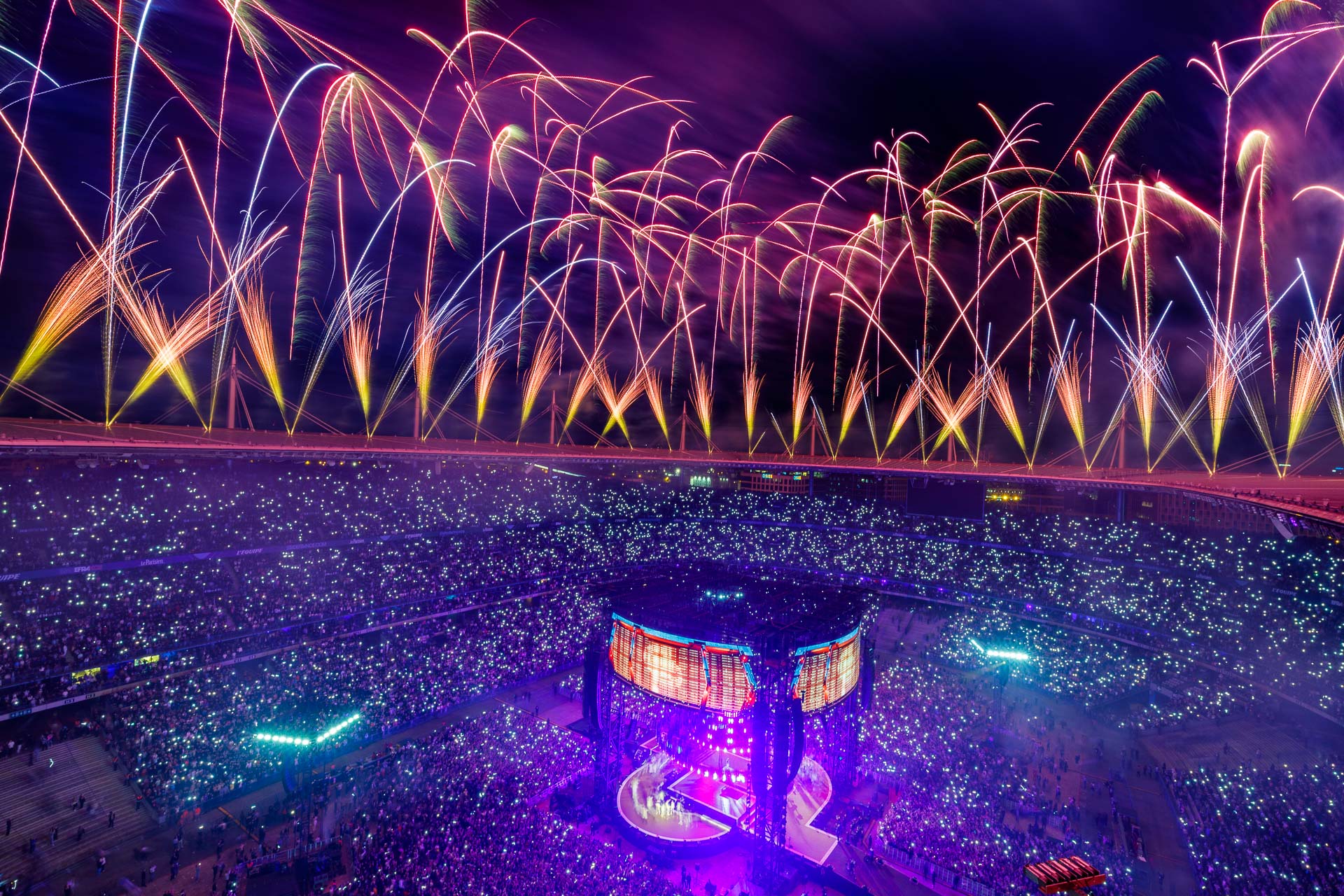 A show created by Es Devlin, directed by Francisco Negrin. Fireworks and drones by Groupe F.