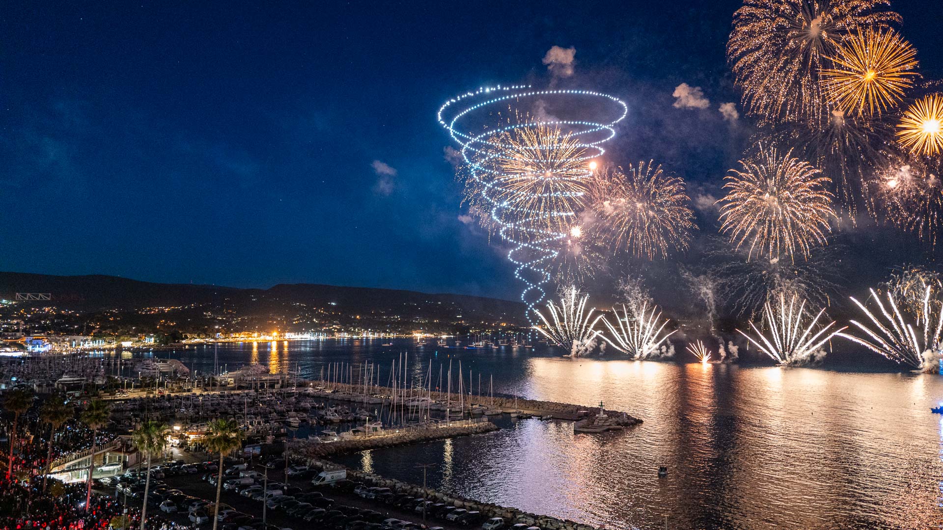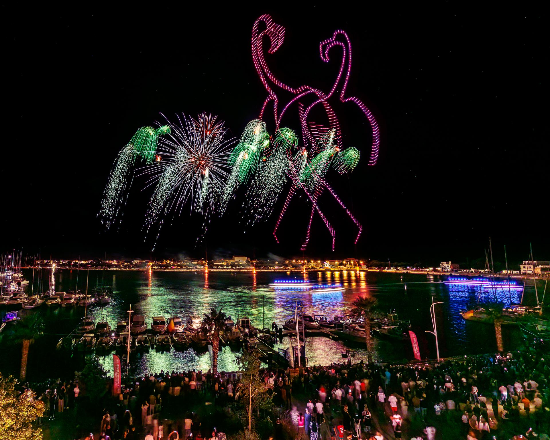 A ballet of drones and fireworks for an European premiere !